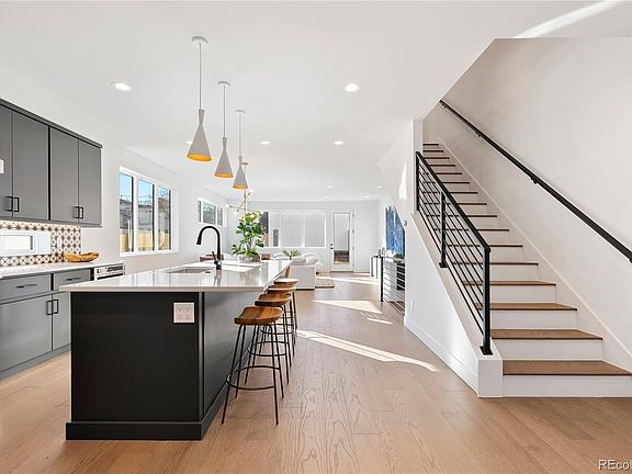 Live luxuriously just minutes from the heart of LoHi in this duplex from award winning home builder Thomas James Homes. The thoughtfully designed modern exterior features stucco and stone. The kitchen boasts a spacious island finished with white quartz countertops, Bosch appliances and Tharp cabinetry. The open concept dining area and great room are perfect for entertaining, while your large backyard steals the show providing a quiet oasis within the city. Front and back landscaping will include sod, plants, and sprinkler system. Work from home in the main floor office, leaving plenty of opportunity for the remaining four bedrooms. The second level features 9' ceilings and 3 bedrooms including the primary suite with en-suite bath and a walk-in closet. The basement provides a generous sized rec room and fourth bedroom with en-suite bathroom.