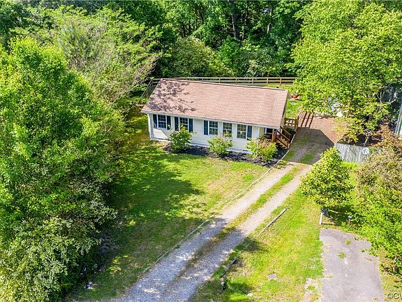 Charming rancher on a large lot in Somerset! This vinyl sided home offers 824 square feet, living room with great brick accent walls, ceiling fan, and vaulted celing, and eat-in kitchen, a primary bedroom with carpet, ceiling fan, and large double closets, a second bedroom also with carpet, and a full updated hall bath. There is an access panel attic, attached AND detached storage shed, a country front porch, rear deck overlooking the spacious fenced back yard, (great for bird-watching!) updated HVAC system, new gutters and new vapor barrior and insulation in the crawl space. The home in in a quiet cul-de-sace in a subdivision and is very convenient to surrounding schools, cities, Fort Lee, and entertainment venues. Check it out while it's still on the market!