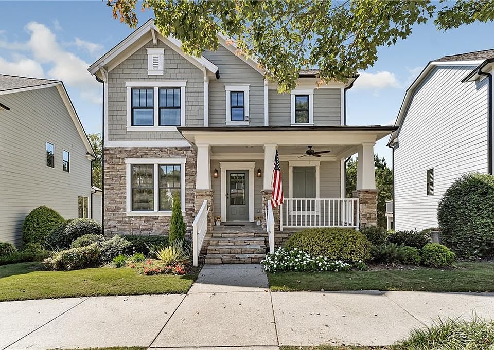 Shadowbrook at Town Center, a sought-after walkability lifestyle community, was voted one of the “Best Places to Live in America.” This delightful live, work, play community is where you can sip a soothing cup of coffee from Cafe Amico or casually eat lunch at Mellow Mushroom. Buy fresh veggies at the Farmer’s Market on Saturday and visit the new 25-acre nature park that is currently being constructed. On a summer afternoon, cool off in the splash pad. Spend the evening dining at Bottles and Bones a Modern American Chophouse. Take advantage of the ten-acre, urban park with an amphitheater stage that hosts free concerts, plays, and movies. Partake of the many Suwanee Festivals: wine, beer, jazz, BBQ, chili, Halloween, and more. Experience the expansive green space with garden areas, sculptures, fountains, and park benches ideal for picnicking. Ride a bike on the Suwanee Greenway or maybe run a 5K. Make your way over with friends to the 2023 award winning StillFire Brewing for drinks and fun games. Afterwards, visit Rita’s for some yummy ice cream. At the end of wonderful activity filled weekend, relax on your rocking chair front porch and pause to chat with friendly neighbors. Enjoy the convenience of being able to walk to everything, while still savoring the peace and quiet of this wonderful neighborhood. This proximity lifestyle could be at your fingertips with this beautiful CRAFTSMAN STYLE HOME, which sits around the corner from the Suwanee Greenway with woods behind the home offering privacy and convenience. As you enter the home, your eye is drawn to the lovely wide hardwood staircase on the right and on the left an attractive room which can be an office, dining room or a small playroom for the kiddos. Beyond the foyer is a flexible open space great room with a cozy fireplace and unique, hidden blade fan and an adjacent kitchen and dining area. The chef’s kitchen boasts a large island with a 5-burner gas cooktop with down draft vent, double ovens, warming drawer, unique copper sink, granite countertops and updated backsplash. Just off the family room is an expansive rebuilt deck overlooking the entrance to the Suwanee Greenway. Expensive patio furniture is a bonus to the future buyer. FREE! A plethora of windows provide pleasing views and plenty of daylight. Attractive new lighting is found throughout most of the home. The upper level includes four bedrooms and two full baths. FYI: the primary bedroom furniture is complementary to the future buyers. The lower level includes a small apartment with separate access from outside and has a full bath and small kitchen-like area with a sink, microwave, coffee maker and mini-fridge. The lower level also has an attached, expanded, two-car garage with new epoxy garage floor coating, plenty of built-in shelving and an enclosed storage area. All Heating/Cooling systems New 2019 and New Roof 2019. This location provides a lifestyle much desired but rarely available and with a highly-rated school system.