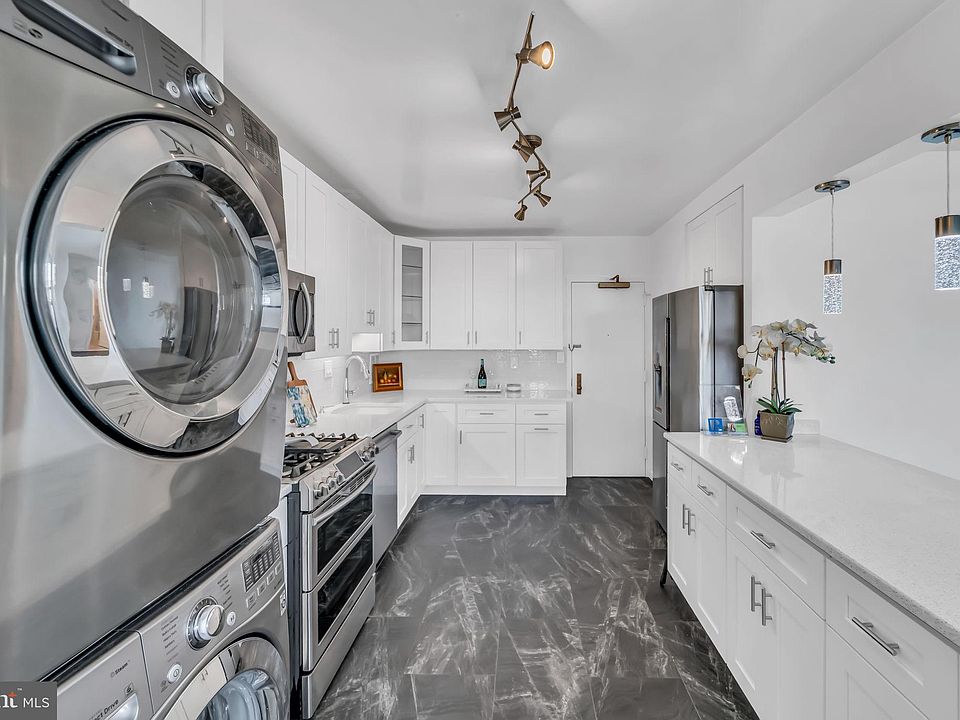 Modern Skyline Condo — 18th Floor | 1 BR • 1 BA • 959 SF Bright, updated 18th-floor condo in Skyline Subdivision with panoramic city skyline views. Modern finishes, energy-efficient upgrades and an open, flexible layout. Kitchen (Remodeled 2020) Cambria “Whitney” quartz countertops Snow Haven White wood cabinets (J&K Cabinetry) Samsung Chef Collection refrigerator; Samsung dual-door range & microwave; Bosch 500 Series dishwasher Montalcino Jasper Black porcelain tile floor Touchless Delta faucet (battery-powered, recently replaced) Polished nickel pendant lighting trio Windowed bar seating — perfect for coffee or casual meals Living & Dining Open-concept layout with abundant natural light and flexible configurations Primary Bedroom Walk-in closet Custom light-gray serenity shades Motorized remote-controlled blackout shade Bathroom (Remodeled 2018) Walk-in shower with Bellini 12×24 glossy wall tile Nu Travertine cream mosaic floor; Cane Series accent blend New recessed lighting and vanity sconces Additional Upgrades New windows & balcony doors (installed 2 years ago) for improved insulation & sound reduction Updated closet doors Fresh paint with recent touch-ups Outdoor Space Private balcony with extraordinary city skyline views Building & Amenities All-inclusive condo fee covers electricity, gas, water and trash 24-hour concierge & security Fitness center, media & billiards rooms, pool Parking & Storage Garage parking: Space N149, Level B2 Private storage: Unit 42N, Level B1 Location Steps to public transit and shopping; minutes to Amazon HQ2, Pentagon City, Shirlington, Arlington, Old Town & DC. Schedule your showing today!!! •