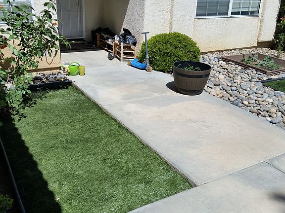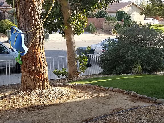 Located on a quiet street with great neighbors and neighborhood. Close, (2 blocks) to market, and a short drive to EAFB and the freeway. The house has a large front room with a dinning room for entertaining large groups. Along with 3 bedrooms, has a den or play room, and a laundry room. I Recently added solar attic fan to reduce cooling cost. Landscaped yard with combined trees, and shrubs, artificial grass, and desert plants for minimum water usage.