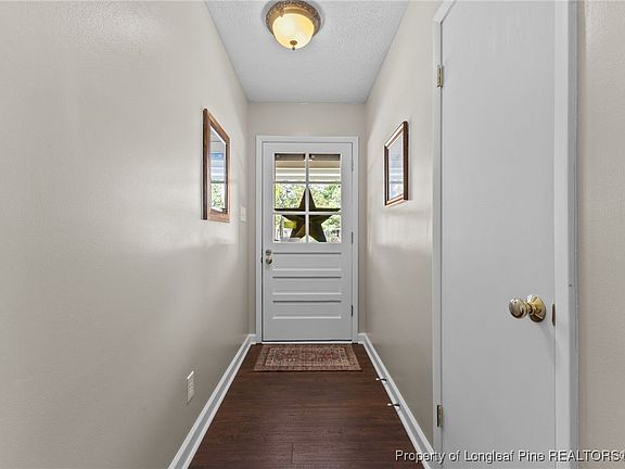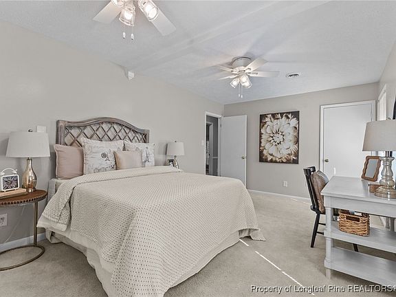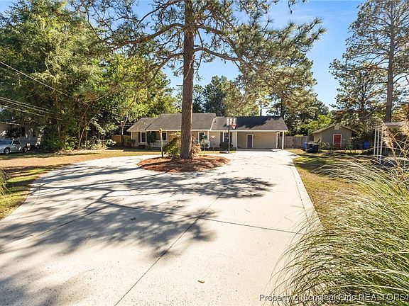 There is ALOT packed into this cute-as-a-button cozy home. Last year kitchen renovation includes new soft close wood cabinets, cast iron deep sink w/garbage disposal, Bosch quiet dishwasher, new SS refrigerator (staying with the house as gift), SS stove & microwave are less than two years old, extra wide bar w/ storage on both sides & recessed lighting, pendant lights over bar with matching chandelier in dining area. Pergo life-proof laminate floors throughout main areas. Large professionally finished living space off living room w/ lots of storage in closets & cabinets, desk-height countertop work area is ideal for an office/craft space or kids playroom. Two recently renovated baths. Hall bath features extra deep cast iron tub, tiled shower area, tiled floor and 5 foot stone counter. The second bath offers a stone tiled shower, sliding glass doors, wood-simulating tile floor in bathroom & laundry area. Practical circular concrete driveway with landscaping island. The covered rear patio was built with the idea that it could/would be enclosed in the future. It matches the original house construction and roofing with footers poured and inspected to facilitate walls. It features recessed lights, outlets, ceiling attic space is insulated to interior house standards w/ all fans & lighting with indoor switches. Two outdoor sheds, wired for electrical and with their own circuit box on separate breaker (30 amps). Front porch has lighted ceiling fans. Lots of beautiful perennials in front and backyard gardens. Complete HVAC system with new ducts installed in 2015 and system was serviced and cleaned in June 2025. Carport has recessed lighting. Energy efficient replacement windows. Solid wood front door. There's even more but you just have to make your appointment to view this home to see for yourself. The location is ideal with proximity to Raeford Rd with all its offerings, the Cape Fear Valley medical system and various other medical facilities.