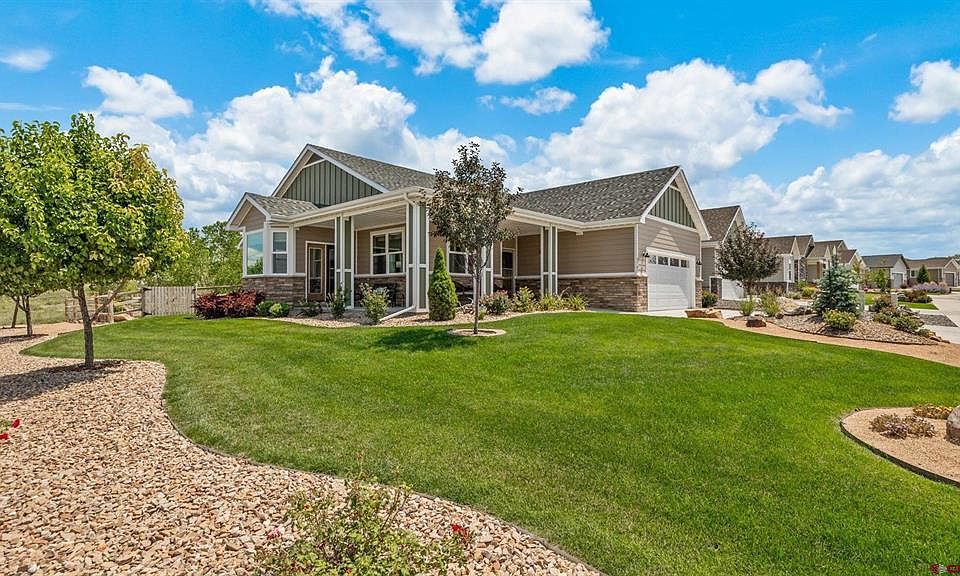 Pristine Patio Home with Incredible Backyard and Landscaping, Gorgeous Views and Beautiful Finishes! Settle into the good life with all exterior landscaping and snow removal included, along with the rare patio home feature of a fully fenced backyard. This nearly-new construction home has been well-maintained and very lightly lived in, and features all the essentials and more. Stunning curb appeal in this craftsman home Step inside to a well-designed floor plan that delivers 3 bedrooms and 2 bathrooms with an additional multi-use flex room that could be utilized as an office or yoga studio. Luxurious finishes adorn the kitchen with sharp quartz countertops accenting custom wood shaker cabinets that are soft close and underlit. The kitchen also delivers plenty of counter space, a large pantry, a convenient breakfast nook with a walk-out to the front porch, and excellent natural light. The living room atmosphere is heightened with a vaulted ceiling, an ornate and quartz-topped built-in system along the wall, and an easy access walk-out to the incredible back patio. The main en-suite is a dream come true with a large walk-in closet, 2 spacious vanities, and an elegantly tiled walk-in shower. This room also features yet a third back patio walk-out, allowing for even more ease and convenience. Stepping out to what might be the main event of the home, the newly screened-in back porch overlooks a stunning and lush backyard, framed by endless acres of national park and blm views. It also comes with 2 fans and roll-down canvas shades, and the backyard experience is extended even further with a two-tiered paver patio and is accented with aspens, pines, raised garden beds, and assorted shrubs. Experience an excellent lifestyle in Brown Ranch which is simultaneously serene and peaceful, while existing just minutes from all the best amenities Montrose has to offer. Unmatched healthcare, quality restaurants, and shopping, a state-of-the-art recreation center, breweries and art galleries, and parks and walking paths exist just minutes out your front door - and you have even more time to enjoy them all with the gloriously convenient nature of an all-inclusive patio home reality. Transcend the Monotony of the Daily Grind and Step into an Elevated, Colorado Adventure; Are you Ready?