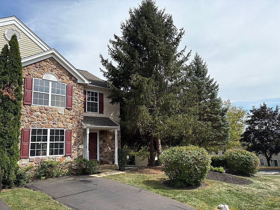 Recently renovated corner lot townhouse in highly sought after Patriots Ridge Community, Doylestown. This 3 bedroom, 2.5 bath home has been freshly painted and is move-in ready. This home exudes natural light throughout. First floor features a living room, dining room, half bath, and large spacious sunlit kitchen with sliders to a deck. The deck has stairs down to the ground level and a large grassy area. The kitchen features stainless steel appliances, a brand new gas stove and new microwave, a garbage disposal, dishwasher and french door style refrigerator. The kitchen has granite countertops and tile backsplash. Upstairs you will find the master bathroom with 2 large closets (1 is a walk-in) and a master bath with a tiled walk-in shower. There are 2 additional bedrooms on this level, a large hall bath with tile walls and tile floor, a linen closet and the laundry room. On the ground level, is a naturally sunlit, partially finished basement with a gas fireplace, large windows, wall to wall carpet, and loads of storage. This townhome has gas heat and central air, making this unit affordable and comfortable. Private driveway. Close to town center and all the excitement of living in Doylestown!