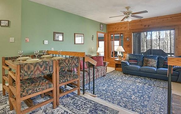 This may be the perfect starter condo for a small family wanting to live and enjoy resort life. Well maintained, secluded end unit, Schreckhorn floor plan with added extra bedroom giving you 913 sq feet of mountain living space with woods views. Very private feel large patio and walk out to common area grass lawn, perfect for the pet owner. Located close to swimming pool complex which includes tennis courts.