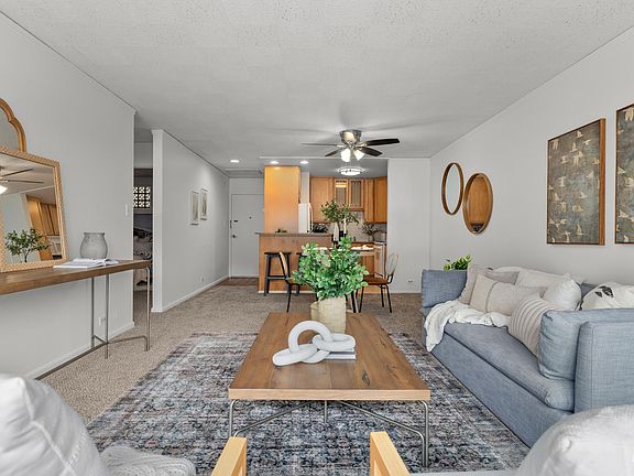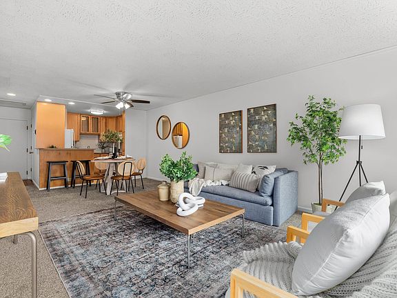 Perched on iconic Crescent Rim, this residence offers breathtaking views of the parks and downtown Boise, extending to the foothills. The Crescent Rim Condos provide a secure, lock-and-leave lifestyle with a stunning community pool, lush landscaping, and panoramic views. Inside, enjoy freshly painted interiors and new carpeting for a modern feel. The kitchen features updated cabinets, countertops, and a stylish backsplash. Upgraded windows and a sliding patio door enhance the serene poolside views from your living room. This condo has two spacious bedrooms and one well-appointed bathroom. HOA fees cover all utilities, internet, and exterior maintenance, offering exceptional value. The property includes a covered parking spot and a 3' x 5' x 8' storage unit. On-site coin-operated laundry adds convenience. Centrally located, you’re steps from Boise’s best parks, the Boise River, the airport, and downtown. Enjoy walks to local eateries and outdoor spaces. This is more than a home; it’s a lifestyle.