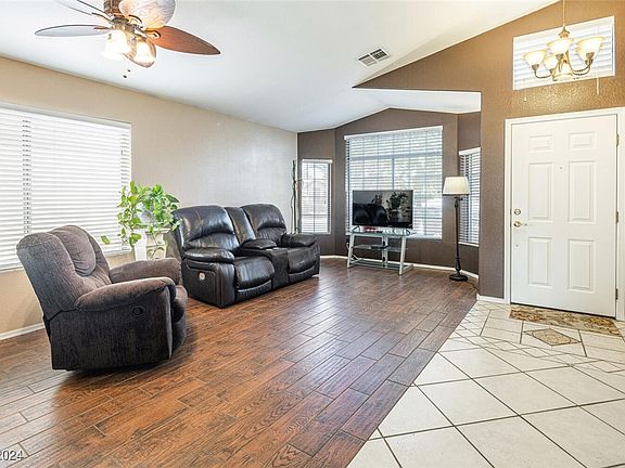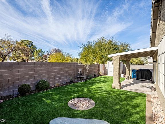 Welcome to this beautifully maintained 3 bedroom, 2 bathroom home in a prime Las Vegas location! Situated on a lot that backs up to a serene park, this property offers privacy and tranquility with a low-maintenance backyard featuring lush synthetic grass. Step inside to find tile flooring throughout, vaulted ceilings, and a cozy gas fireplace in the family room — perfect for gathering with loved ones. The kitchen has a nice sized island and includes all appliances! Enjoy peace of mind with a brand-new $22,000 HVAC system and freshly painted exterior. Washer and dryer included! The spacious 2-car garage provides ample storage, completing this fantastic package. Don’t miss this rare find — a single-story home with modern conveniences, park-side living, and endless charm! Schedule your showing today!