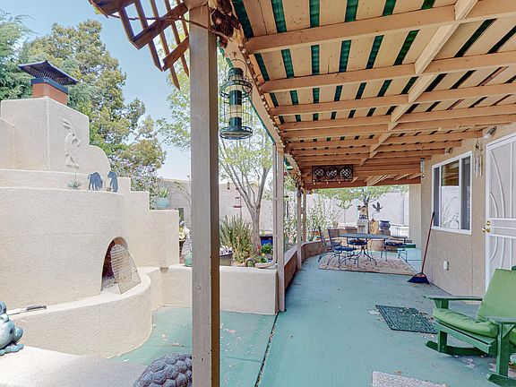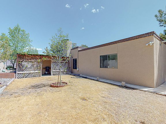 Proudly Presenting this Delightful Home in Panorama Heights of Rio Rancho. This meticulously maintained single level home has so much to offer. Oversized lot at nearly 1/3 acre located in a quiet Cul-de-Sac, Northern New Mexico Pueblo design with Brick Capped Parapets 3 Garage Spaces and Backyard access. This Custom designed home includes beamed Ceilings with Tongue-n-Groove, Built-in Shelves and updated Kitchen. All bedrooms have walk-in closets (the master has (2)) and the detached garage includes a shop/storage room of over 80 sf. Outdoor living? You bet! Walled privacy wall with iron gate for back yard access on both sides. Covered and Open Patio includes a Stucco Banco Seat and Fireplace. Folks, View the Pics and Virtual Tour and schedule a visit ASAP. Virtual Estate Sale in process.