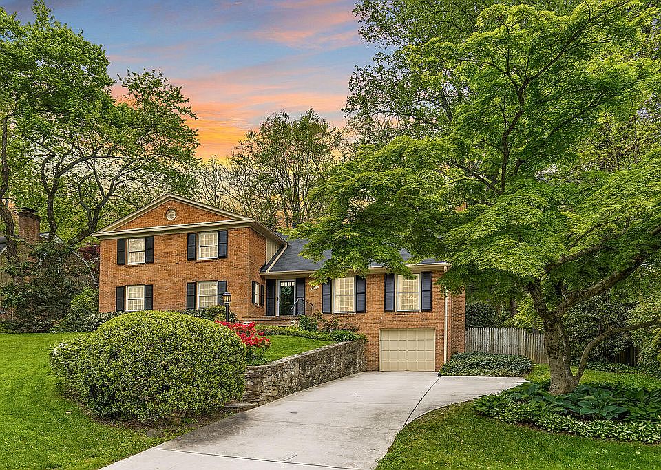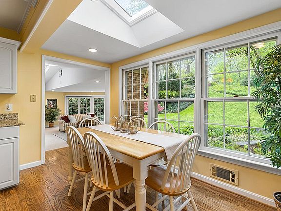 Spacious and sunny 5BR ; 3BA + den home in popular Barcroft Hills sited on a beautifully landscaped lot. This solid brick home features include large windows, hardwood floors, built-ins, skylights and large spaces for entertaining. Expansive main level includes in law suite or guest room, full bath, den/study with built-ins, eat in kitchen with granite counters , original exposed beams and adjacent great room with wood burning fireplace, door to patio and wall of windows which overlooks beautiful acre+ lush yard with mature trees, Gracious living room with crown molding, wood burning fireplace and an oversized separate dining room with chair molding and sliding doors to brick patio complete the main level. Upper level offers 4 bedrooms including spacious primary suite with sitting room, double vanity and soaking tub. Lower level features a mud room, laundry, and garage entry. Easy access to Metro Bus, and commuter routes. Barcroft Woods is located inside the Beltway and just minutes to Tysons, Arlington, and DC. This home is a must-see!