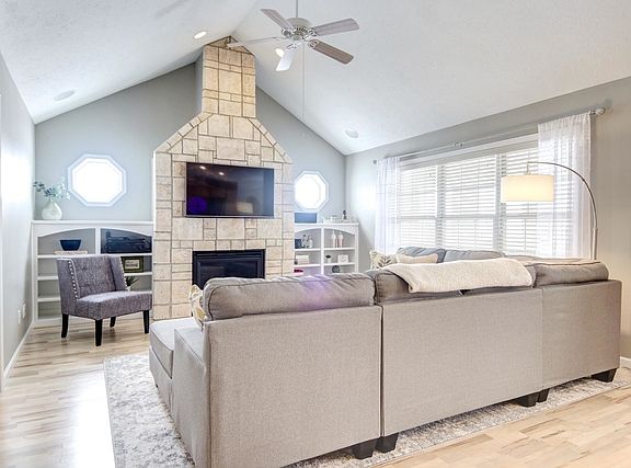This 3 bedroom, 2 bath updated ranch is ready for you to unpack and call it home! The open floor plan is perfect for entertaining. The cathedral ceiling make the living room feel spacious and cozy with a fireplace and book shelves. The dining room has a dry bar with plenty of storage perfect for a coffee or wine bar! The kitchen offers abundant cabinet and countertop space with a breakfast bar island. The master is generously sized with a large walk in closet and full bathroom with double vanities. The 3 seasons room is perfect to look out over backyard with no neighbors behind. Surround sound system inside and outside. Lawn sprinkler system to make yard maintenance more convenient! Close to neighborhood playground, bus route, shopping and more! Schedule your tour today!