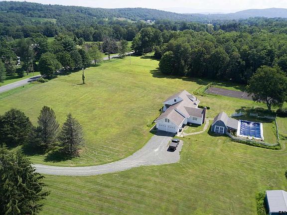 Available for the first time! Gorgeous 4 BR, 3 Bth ranch situated on a beautiful 9+ acre lot. Home features large kitchen with appliances including dual ranges, family room with functioning fireplace and recently remodeled living room. Many recent upgrades include full exterior painting, insulated garage doors, exterior doors and many windows. Outbuildings, tennis court and large lot provide endless recreational opportunities. Conventional Only Centrally located 30 miles from both Albany & Saratoga.