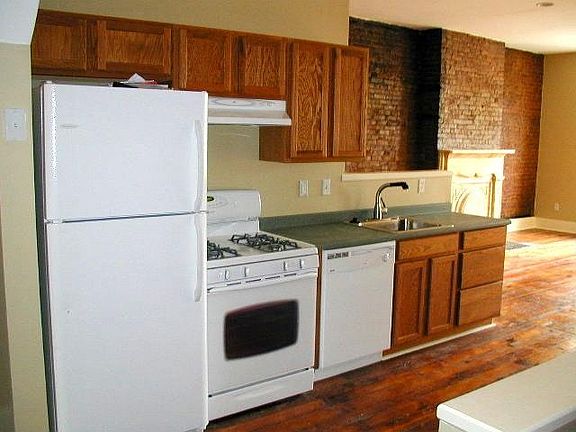 Available for August move-in. Large second floor studio loft. Wood floors, high ceiling, exposed brick, central air, large bath, washer/dryer (in-unit), equipped kitchen. Pets ok. $1025 plus gas and electric.