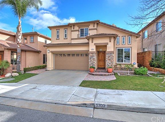 Lovely Olinda Ranch home with open floor plan and comfortable living. As you enter the home you enter a spacious living room/great room. Spacious separate family room, being used as formal dining area open to the kitchen and back yard. Dramatic fireplace provides a cozy warm atmosphere. Inside laundry room is conveniently located near the kitchen and a soft water system is included! Fourth bedroom has been converted to an office/project room with laminate flooring and lots of counter space. Full size driveway allows you to park 2 cars in the driveway and garage has direct access to the home. Low maintenance yard front and back. This home is conveniently located near Olinda Ranch Elementary, sports parks, schools, shopping and more. Washer, Dryer and Refrigerator included in the sale.
