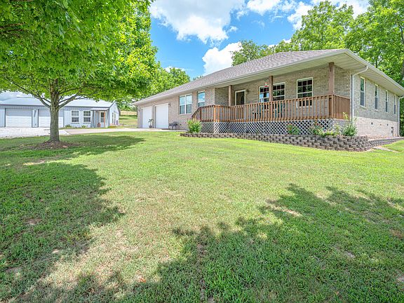 58.25 acres wooded and open with deer & turkey. 40 x 80 Shop. Beautiful home and DON'T be detoured by 2 Bedrooms without exploring the configuration of the Home with Detached Mancave/Shop. This is a country paradise. Solid ALL BRICK 2 BR, 2 BA Main Home with all solid surface counters, a Living Room with Cathedral ceiling and gas log Fireplace, a large Kitchen with adjoining Casual Dining PLUS a beautiful year-round Sunroom and an oversized attached 2-car Garage. Just a few short steps away is the BONUS Detached 2-Car Garage/Workshop complete with its own Kitchen, Living space with wood-burning stove, Full Bath and a Mini-Split for year-round comfort. This is a great space for guests, hobbies, canning or just extra space to hangout. Then down by the road as you enter the property from Round House Road, you'll find a big 40 x 80 Shop with concrete floor just waiting on you to repurpose it. There's also an open pole barn ready for your specific needs. The land is a beautiful mix of open space and woods home to lots of deer and turkey. With trails already cut in as well as a tree stand & deer stand in place, you'll be ready for hunting season this Fall. Here you'll have room to run, explore, hunt or just soak up the peace and quiet. Whether you're dreaming of a country retreat, hunting getaway or your own peaceful homestead -- this one's set up and ready to enjoy. All room measurements are approximate but not guaranteed. Living Area square footage is approximate. Buyer to do own due diligence on square footage.