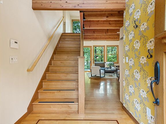 Craftsman style treehouse nestled in the headwater area of Fanno Creek, surrounded by Sweetbriar Woods, a forested greenspace privately owned by four homes. The home is a collaboration between local builder/preservationist Rick Michaelson and builder Rob Phillips resulting in a modern Pacific NW Hideaway. Large wood pane windows on all three floors capture 260-degree views of the forest. 2,201 Sq Ft with 3 bedrooms and 2.5 bathrooms. Main level kitchen and great room with high ceilings and exposed wood beam. Top floor with a 3-sided floating primary suite loft, Doug Fir hardwood floors, and glass panel railings to capture the view. Large walk-in closet, washer/dryer and sunny den/office. Lower-level features guest bedroom suite with fireplace and private deck plus spacious 3rd bedroom and second washer/dryer hookup. A truly magical home centrally located in Portland's West Hills. Walk to Council Crest and easy commute to OHSU,Nike & Downtown. Easy access to HWY 26,NW 23rd Street, The Pearl and Hillsdale.