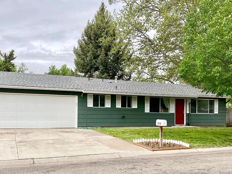 Great northwest Boise location. Available May 15th. New carpet, freshly painted interior and exterior. Three bedrooms, one bath. Laundry area with hookups. Large fenced backyard, no sprinkler system, needs to be watered via hose. Central air, gas forced heat. Small dog possible depending on size/breed and references. Sorry no puppies or cats due to nee carpet. Two car garage with opener. 1 year, tenant responsible for utilities and landscape care.