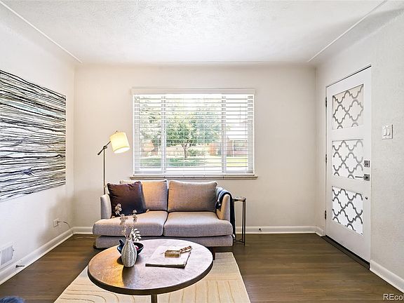 Bright and airy interiors illuminate this chic Highlands residence. A quaint front patio provides a picturesque setting for enjoying morning coffee and al fresco dining. Residents are welcomed into a sun-drenched layout flowing effortlessly w/ handsome hardwood flooring. A spacious living area extends into a dining area highlighted by a reclaimed lath wooden accent wall, creating subtle ambiance for entertaining guests. Meticulously updated, a modern kitchen showcases sleek cabinetry, a tiled backsplash, stainless steel appliances and quartz countertops. Two spacious, light-filled bedrooms offer flexible living w/ space for a primary bedroom, guest accommodation or home office. A newly renovated bathroom beams w/ contemporary vanity storage and lighting. Enjoy relaxing outdoors in the lush backyard w fruit trees + privacy fencing. Additional amenities include a new furnace, washer and dryer set and a one-car detached garage space. An ideal location affords close proximity to Sprouts Farmers Market and Tennyson Street shops and restaurants. No HOA. Electrical and plumbing were updated in 2016.