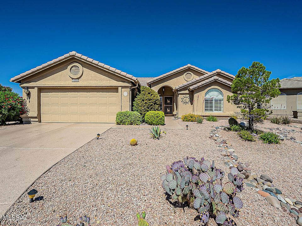 * Come see this very popular, nicely updated 3 bedroom, 2 bathroom Topaz model with views! This home is located on a corner, cul-de-sac lot and enjoys a large, well landscaped lot. Kitchen features granite counters, stainless steel appliances, bay windows with shutters in breakfast nook, newer carpeting in living room and 2 bedrooms, newer wood-like tile in family room and 3rd bedroom, granite topped executive height counters in both bathrooms with new lighting and mirrors, surround sound speakers in family room, LG front loading washer and dryer, epoxy coating in garage and driveway, HVAC unit new in 2020, 4 large garage storage cabinets, bricked floored covered patio for outdoor enjoyment. This is a terrific home and is ready for new owners. Sellers say neighbors are wonderful!