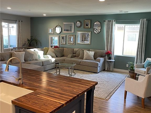 Beautiful single story 5 bedroom & 2 1/2 bath home located in the French Valley area of Murrieta. Situated in a quiet well-kept neighborhood nearby walking distance of Crown Valley Park. The large kitchen offers top bar seating for 4 at the oversized island with dark butcher block counters, a farmhouse sink, and all-new cabinetry. The large kitchen has all new appliances throughout, white cabinetry, open shelving, and plenty of storage. Complemented by white marble countertops and a one-of-a-kind backsplash. All flooring is one year new with heavy traffic, pet-friendly laminate and all baseboards are new and fresh. All three bathrooms were renovated and now have new sink cabinets. Both showers have floor-to-ceiling tile, new lighting fixtures, and a fresh look. With fresh paint throughout new window coverings, this house is move-in ready. A large pool-sized backyard features an aluma-wood patio cover, vinyl fencing dense mature plants, and a lush lawn with an automatic sprinkler system that is Bluetooth accessible. NO HOA. The home is located in the Temecula Valley Unified School District. Leased to transfer to the new owner for the solar system from Tesla. The seller looking for a rent-back option until the end of May if possible. ADA-friendly with concrete ramps to all exterior access. Home is Beautiful!