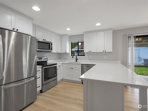 Welcome Home! Must see this beautifully updated and move-in ready, 3 Bed, 1.75 Bath, Rambler located on corner lot in the desirable Eastmont/Silver Lake neighborhood. Too many updates to list them all here - New Flooring throughout, Exterior and Interior Paint, New Appliances, Kitchen Cabinets with Quartz Countertops, Bathroom Fixtures, Garage Door w/ Opener and Electrical Panel. Interior Features spacious Living area with Fireplace, Slider flows to Patio and fenced back yard with Outbuilding and Garden Space. Mature Landscaping and space to park a dozen cars for gatherings or your Toys. 2 Car Garage. Gas Forced Air furnace. Photos are virtually staged. Near Shopping, Services, Schools, Park & Ride and freeway access.