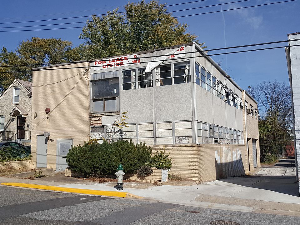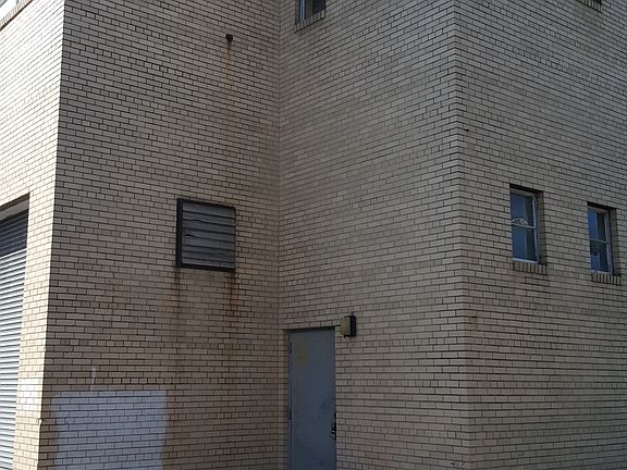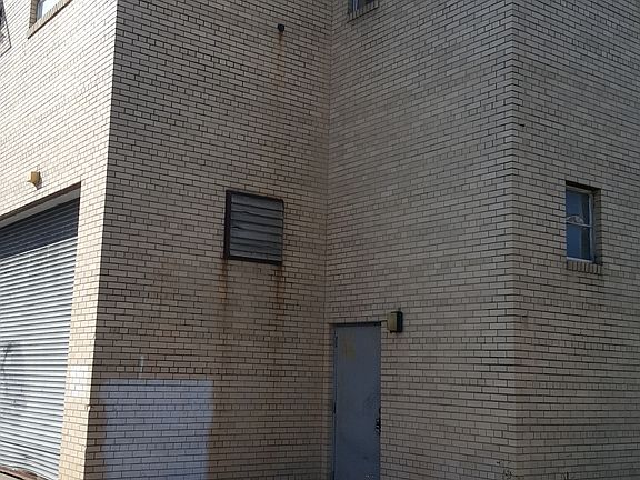 7400 sqft brick face commercial warehouse with cinderblock foundation, 3 car garage and approx 20'high ceilings.
