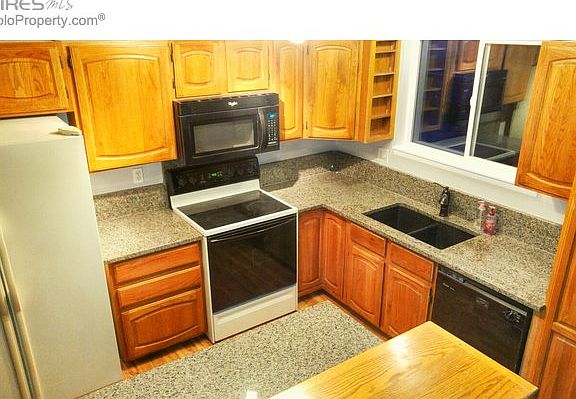 LOOK AT THE NEW! Extensively remodeled ranch style home in west central Loveland has NEW carpet, paint inside & out, wood floor & granite counters in kitchen, light fixtures, windows & roof! Newer furnace! Spacious master bedroom with large walk-in closet and walkout to expansive back deck. Dining room has built in cabinets & will accommodate a large table! Oversized 2 car garage with workshop/studio space! 3 car driveway for RV parking! Separate storage shed! Walk to Woodmere Park!
