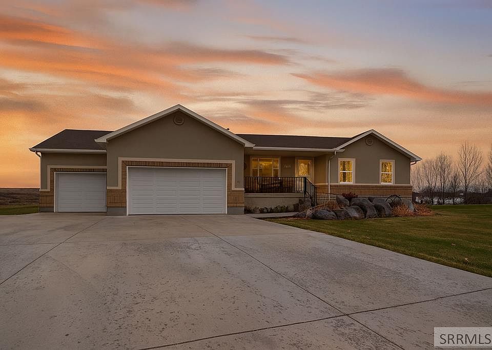 This one checks all the boxes, this beautifully finished 7-bedroom, 4-bathroom home on just over an acre in Rigby offers modern style, generous space, and a layout built for everyday living. Inside, you'll find vaulted ceilings, open-concept living, and a kitchen designed to impress with custom distressed cabinetry, granite countertops, stainless steel appliances, and a large dining area that opens to an oversized back deck; perfect for entertaining. The main level features three bedrooms and two full bathrooms, including a spacious primary suite with tray ceiling, walk-in closet, jetted tub, dual sinks, and a walk-in tile shower. A convenient laundry room includes a half bath and upper cabinetry. The fully finished walk-out basement offers four additional bedrooms, a full bathroom, and a large family room with wet bar and access to a concrete patio with fire pit. Outside, enjoy a full sprinkler system, established lawn, programmable exterior lighting, and space ready for a future shop. Located in a sought after neighborhood near Rigby schools. This home is move in ready and waiting for you!