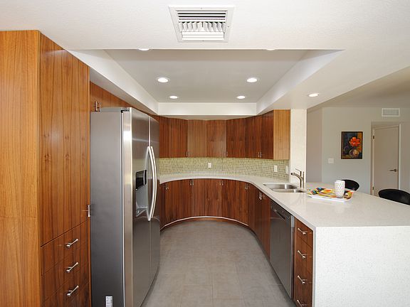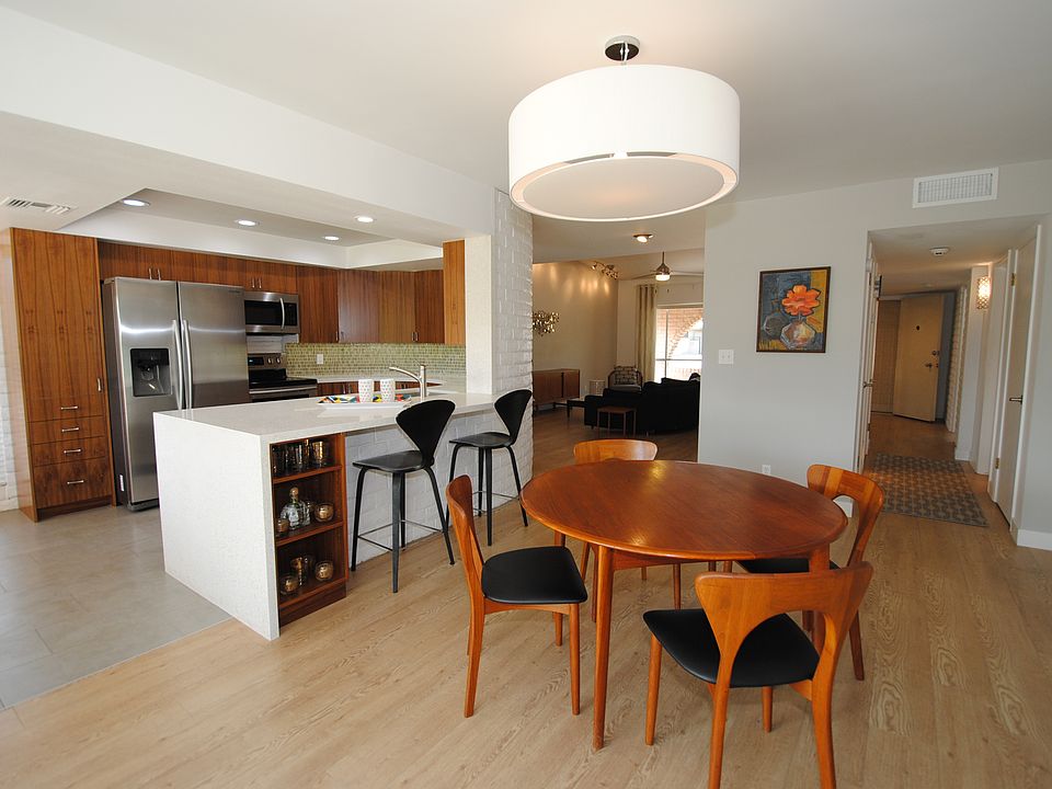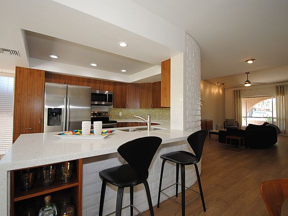 Midcentury condoSlump block wallsQuartz countersCovered patio areaTwo covered carport spacesStainless appliancesMassive second bedroom
