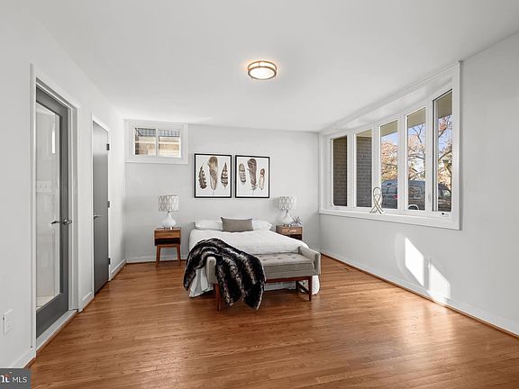 Contemporary architectural rancher settled in the 19th-century historic district of Ashburton amongst mature trees and provides a warm and sophisticated interior ideal for indoor and outdoor entertaining. Arrive into the main level by way of the front entry highlighted by stone and pebble accents with a modern aged ceramic tile that cascades from the skylight and brings nature into the space. The spacious living and dining rooms offer an open concept floor plan featuring a brick surround wood-burning fireplace, wall-to-wall windows for views of the rear deck and patio as well as gorgeous hardwood floors that continue throughout. A modern gourmet kitchen boasts two transom windows, a basket weave textured ceramic tile backsplash, 42” soft close sleek cabinetry, stainless steel appliances, a breakfast bar, and quartz counters. Relax and unwind in the tranquil primary bedroom suite that promotes calm with a walk-in closet, a luxurious soaking tub, dual vanity, and a double rain shower walk-in shower. Three additional bedrooms and a hall bath complete the sleeping quarters. The fully finished lower level allows for an abundance of possibilities with a bar, office or possible bedroom, and theater room for a truly unique experience. Enjoy morning coffee or evening cocktails in the private fenced yard and be the envy of all the neighbors. Major commuter routes include I-695, US-40, and I-83.