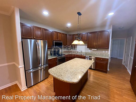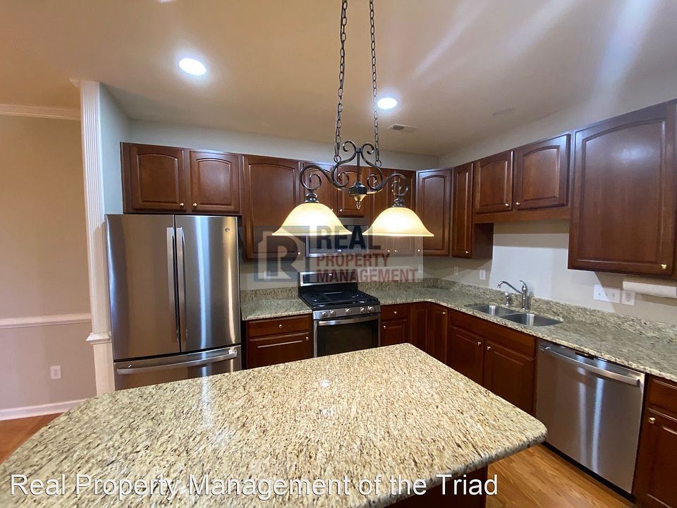 Spacious 4 Bed / 3 Bath Town Home in NW Greensboro - A must see 4 bed / 3 bath end unit town home. Great location off Horse Pen Creek Rd, minutes away from the Urban Loop. Large kitchen with stainless appliances, island, granite counter tops and lots of cabinets. Master bedroom located on the main level with large master bath. Wood floors on the main level. Large loft with wet bar and mini fridge. Bonus room / bedroom over garage with enormous closet. Gas range oven, gas furnace and gas hot water heater. Large two car garage with paved drive. Covered patio. Call Today! 12 month lease, Security Deposit and Lease Administration Fee Apply. Or call our agent for a showing! AVOID RENTAL SCAMS: Real Property Management is a licensed Real Estate Agency and exclusively markets and represents this listing. We do not advertise on Craigslist. We would never ask you to wire money, request funds through a payment app for initial rent, deposits, or take the key after your showing to move-in. No Pets Allowed (RLNE6295228)