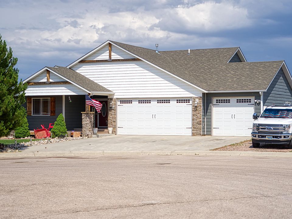 A spectacular home located in a cul-de-sac on a nice corner lot! A very open floor plan offering high vaulted ceilings with a kitchen offering elongated cabinetry, pantry, instant hot water and plenty of counter space with recessed lighting. A MASTER SUITE DREAM with a large bedroom, double sided fireplace to enjoy while relaxing in your jetted tub, massive walk in tiled shower, large double sink vanity, laundry area and closet! All new flooring in main level offering LVT flooring throughout except bedrooms with newer carpet. A partial finished basement with family room with plenty of room to finish 2 additional bedrooms and a full bathroom. Lots of storage. An amazing heated 3 car garage with tandem plumbed with an air compressor. Lots of RV parking with RV hookup!