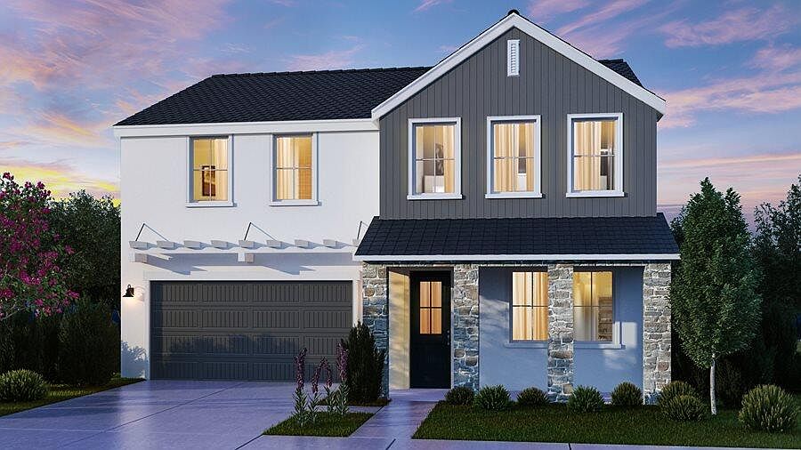 Welcome to the Overture model at Coronet @ River. Island Ranch. This two-story home hosts an open layout shared between the Great Room, kitchen and dining room on the first level, while a patio offers space for indoor-outdoor living. A bedroom off the foyer works well as a space for overnight guests or a home office, while the remaining four bedrooms and a loft are situated on the second floor.