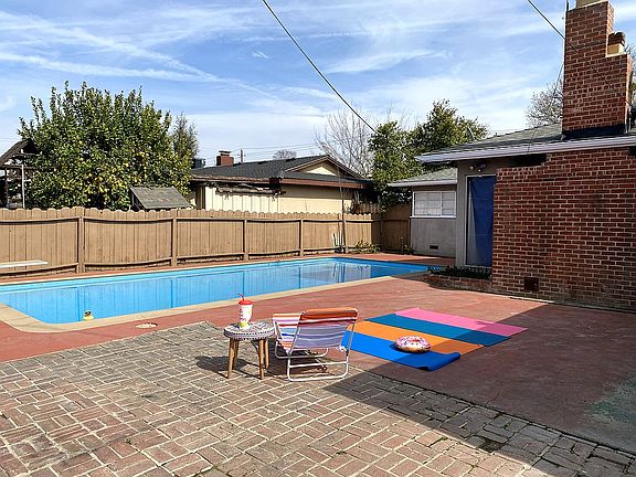 This lovely 1495 sq ft, single story, Mid-Century modern home is the heart of the family. 2 bdrms and 2 bathrms for privacy and for gatherings, there’s a living room plus a LARGE family room. (Because of the large family room_ the living room was used as a bedroom by previous tenants.). The FR room has its own auxillary wall furnace. Either room would make a good office for those working from home. This house covers all the wants and needs whether you’re hosting an extended family event, watching tv in the family room, or relaxing by the pool. There are lots of “news” including a new stove, dishwasher, plank flooring, carpeting, Ring Security System, and low-flow toilets. Many “almost news” include the roof (replaced in 2019), A/C Furnace (replaced 2020), water heater 2 years old. Enjoy the neighborhood but also have fun at - Manchester Park a block away, Manchester Shopping Center which plans to offer 61 stores, easy freeway access to Highway 41 and 168, and the Fresno Area Express bus station by Manchester Center.