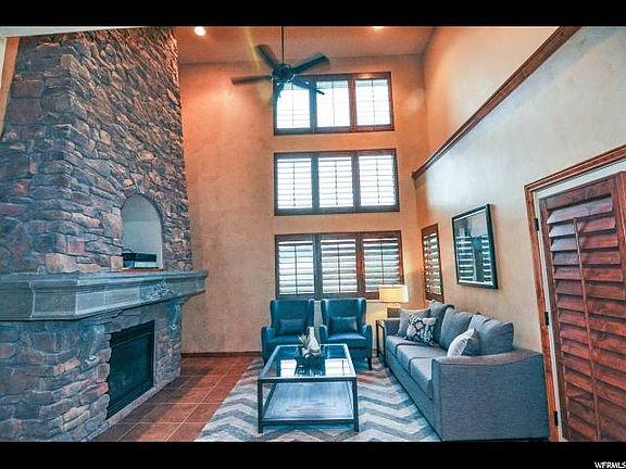 Enjoy luxury town home living in this Eden five bedroom. The extra tall family room with floor to ceiling windows provides tons of natural light! From the wood cabinetry and trim, beautiful plantation shutters & decorative finished walls there are warm tones throughout, delivering a spacious interior. Main-floor master with en-suite and over-sized walk-in closet is complimented by another separate master suite on the second floor allowing a one-room lockout unit with kitchenette and separate entrance. A large theater room, as well as an additional space you can use for an office/den/exercise room with a walkout to the backyard finishes off the basement nicely. Relax in the sauna or on the covered deck providing panoramic views of Ogden Valley and Wolf Creek Golf Course. Sold furnished with lots of storage space! HOA has a great pool and clubhouse for your use! This immaculate mountain home is roomy yet charming and perfectly positioned with easy access to the New Commercial Core at Wolf Creek Resort. Perfect quiet location close to outdoor recreation for years of enjoyment either for personal use or investment.