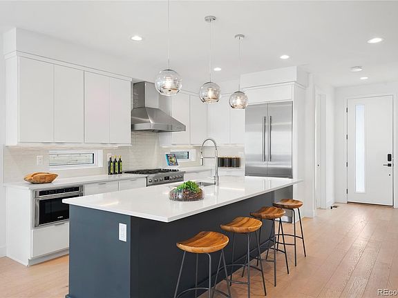Live luxuriously just minutes from the heart of LoHi in this duplex from award-winning home builder Thomas James Homes. The thoughtfully designed modern exterior features stucco and stone. The kitchen boasts a spacious island finished with white quartz countertops, Bosch appliances and Tharp cabinetry. The open concept dining area and great room are perfect for entertaining, while your large backyard steals the show providing a quiet oasis within the city. Front and back landscaping will include sod, plants, and sprinkler system. Work from home in the main floor office, leaving plenty of opportunity for the remaining four bedrooms. The second level features 9' ceilings, custom cellular shades throughout and 3 bedrooms including the primary suite with en-suite bath and a walk-in closet. The basement provides a generous sized rec room perfect for the imagination and fourth bedroom with en-suite bathroom.