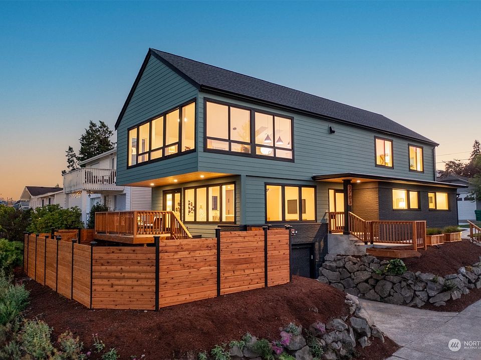 Welcome to a PNW dream! An exquisite custom built corner lot home where thoughtful craftsmanship & modern design merge. Step into the expansive great room boasting 12 ft ceilings & an awe inspiring wall of windows w/ unparalleled views of dwntwn Seattle, Space Needle, Mt Rainier & Bellevue. Open chef's kitchen w/ custom cabinetry, quartz countertops & oversized island. Your primary suite awaits w/ luxury “wet bath” w/freestanding tub, walk-in shower, dual sinks & smart mirrors; walk-in closet & laundry. You’ll find a cozy retreat w/ wet bar on the 1st floor, den perfect for a home office, 2nd laundry, mudroom, EV wired 2 car garage + sep shop/garage, AC & private fenced yard. This home exudes exceptional living... get ready to fall in love.
