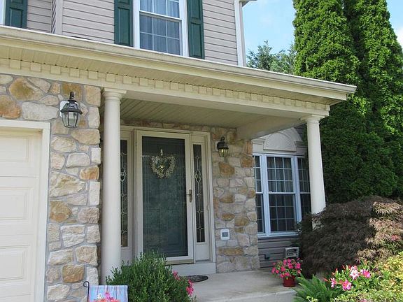 STUNNING STONE FRONT COLONIAL! Located in Cul de sac with 2 Car Garage, features 4 Bedrooms, Den or 5th bedroom in Lower level, 3 Full baths & 1 half bath! Formal Living room & Dining room, hardwood flooring, Eat in kitchen with island, lots of cabinets, First floor family room with Fireplace!! Sliders to huge trek deck with awning & vinyl railings, Gorgeous Stamped concrete patio for entertaining! Beautifully landscaped yard with lot of flowers & trees, huge shed included! Fully fenced back yard for your furry friends. Huge master bedroom with cathedral ceilings, walk in closet & master bath suite with dual vanity, soaking tub & shower. Lower level family room great for entertaining with extra room could be Bedroom, Den or Gym room & full bath, & walk out. Roof is 4 years old, Super nice big yard!! This home has it all! Extremely well maintained come take a look!