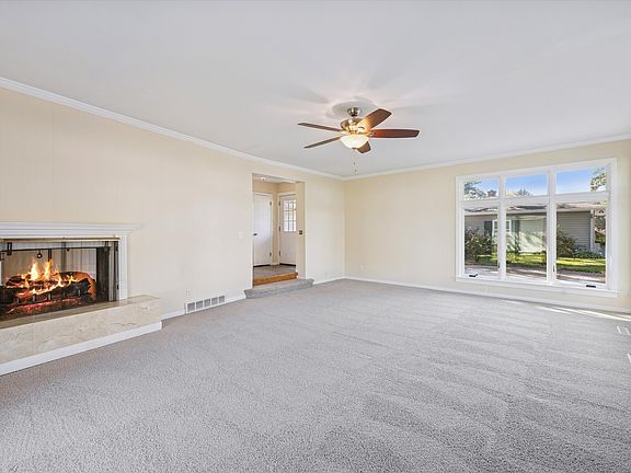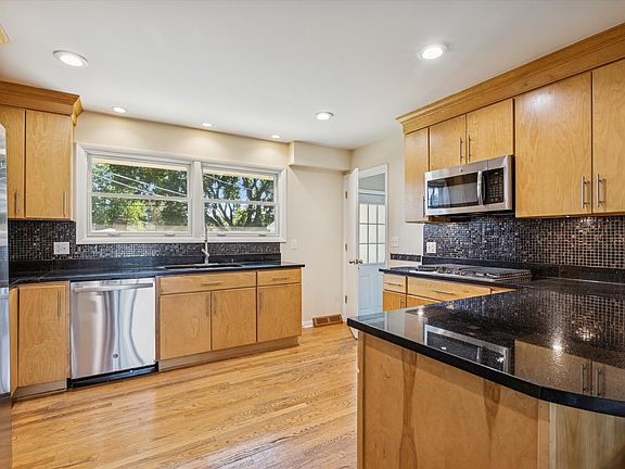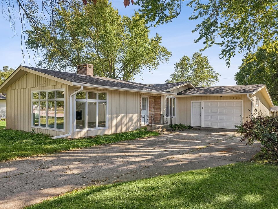 This cute 4 BR ranch home is so bright, filled with great sunlight all day long. A huge living room along with the openness to the dining and kitchen area, they just found it so beautiful. Whether you're in the grand living room or in the front den, the see-through wood-burning fireplace really adds a warm, inviting touch. If a big, gorgeous kitchen is on your must-have list, this home has what you're looking for! Granite countertops, custom tile backsplash, stainless steel appliances, wall-to-wall cabinets, crown molding, recessed lighting, and three-seat breakfast bar all work well together to add beautiful style to this wonderful kitchen. Each of the three spacious bedrooms are located away from the main living areas, adding a little privacy to this smart, functional layout with hardwood floors. Bedroom 4 is currently being used as a home office with additional exterior access to outside sitting area. Full unfinished basement and an over-sized one car garage are just some of the other features in this desirable home. Carpet and Painting has just been completed! A/C, Dishwasher, Water Heater and new garage door replaced in 2024. Roof and Pella windows (Living Room/Dining Room) replaced in 2023. The fenced backyard faces South and is ideally suited for a vegetable or flower garden. Located in a quiet, mature neighborhood. Close to schools, Parks, Community Pool, Historic Downtown McHenry, fantastic restaurants, and the Fox River!