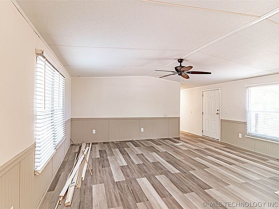 A new deck on the back of the home is perfect for relaxing after a long day. A storage shed provides convenient storage space for tools and equipment, while a storm shelter offers peace of mind during inclement weather.