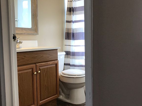 Very well maintained house on large corner lot, with small fenced in area. Large driveway for off street parking. Ceiling fans in front room and one bedroom. Brand new stacked washer/dryer. Appliances provided. Tenant pays utilities and is responsible for grass and snow removal