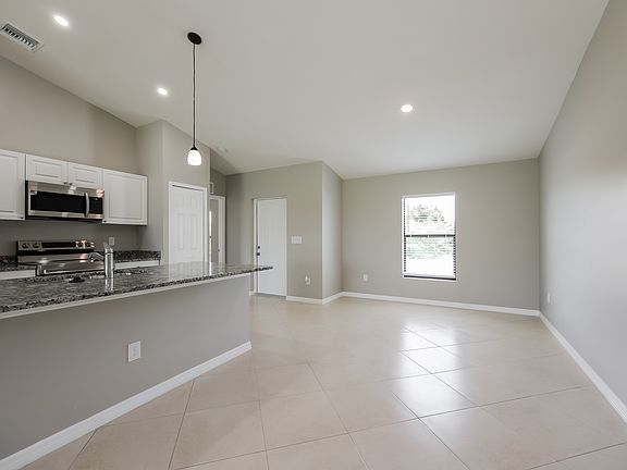 Spacious single-level ranch home offering 4 bedrooms and 2 bathrooms, located in Lehigh Acres, FL. Bathed in natural light, this residence has been freshly updated and is ready for immediate occupancy. The kitchen is equipped with stylish granite countertops and stainless steel appliances. With 1,566 square feet of modern living space, the open-concept design features large windows, tile flooring throughout, a covered front porch, and an attached garage. The kitchen boasts ample cabinetry, granite counters, and stainless steel appliances, seamlessly connecting to the dining and living spacesperfect for gatherings and daily life. Both bathrooms feature granite vanities with chrome fixtures, adding a touch of elegance. Additional amenities include central air conditioning, forced-air heating, ceiling fans, and a new roof for easy maintenance. Outside, a concrete driveway and well-maintained yard sit on a generously sized lot. Location: Located in Lehigh Acres, this home provides convenient access to local shopping and services. Nearby parks and community facilities present a range of opportunities for outdoor activities and pet-friendly strolls. Rental Criteria: - A minimum credit score of 550 is required - Income must be at least three times the monthly rent - Co-signers are welcome to apply Contact us today to arrange a tour or to receive additional details.