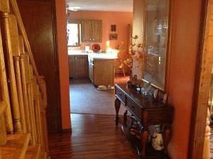 Beautiful 11/2 story home with full unfinished basement. Tall ceilings, gas log fireplace. Updates in last 2 years include roof, floor coverings, paint, refrigerator and oven. Pretty country setting on the edge of town. Fenced yard, landscaped, deck, large shed. Can purchase house with 4 acres for $179,900 (see MLS#132739).