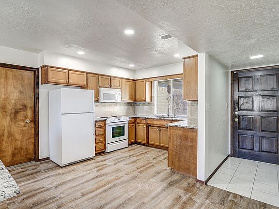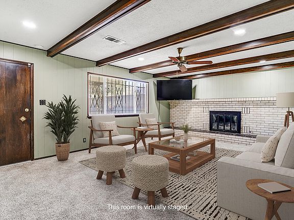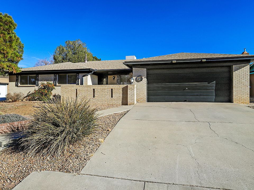 Welcome to this classic brick veneer ranch located in one of Albuquerque's sought-after NE Heights neighborhoods. This well-maintained home offers a comfortable layout, 2 inviting living spaces with newer flooring in main areas. Inside, you'll find a bright living room that flows easily into the kitchen, creating a flexible space for everyday living or gatherings. Large den with cozy fireplace & vigas. The kitchen features granite & an island w/wine fridge along with formal dining area (Refrigerator stays), giving you options for casual meals or hosting friends & family. The additional bedrooms are well sized & share a full bath, making the layout functional for a variety of lifestyles. Step outside to enjoy a spacious backyard with built-in grill & covered patio. Come see today!
