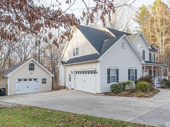 Looking for a moment of peace and tranquility in the growing Triangle? This home sits on .79 acres, with a large fenced yard for dogs and guests to enjoy. The surrounding woods offer privacy and natural views. Downstairs features a ton of living and entertaining space, with a mix of open and traditional floor plan. The massive bonus room upstairs is perfect for remote work, exercise, gaming, etc. Tons of storage throughout the home. In addition to the 2-car garage with extra storage space (cabinets, etc.), the detached 1-car garage also has a loft for storage above. Bimonthly lawn maintenance can be included for an additional fee. Contact agent for application link. Tenants covers all typical utilities (water, power, trash). Landlord covers quarterly pest treatments (ants, spiders, roaches) and also annual termite inspection. Bimonthly lawncare can be included for additional fee. Dogs negotiable at landlord's approval.