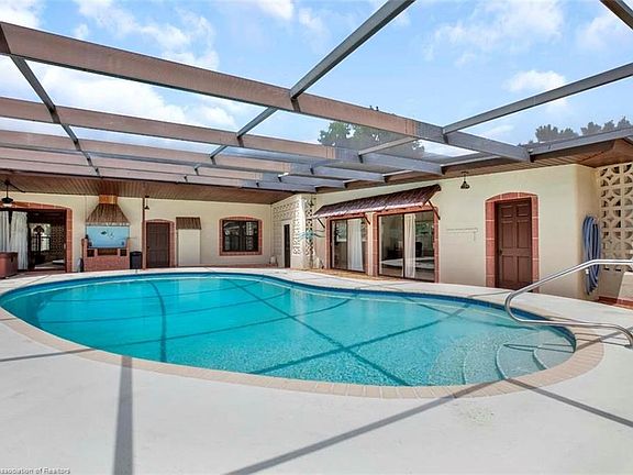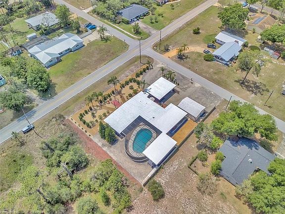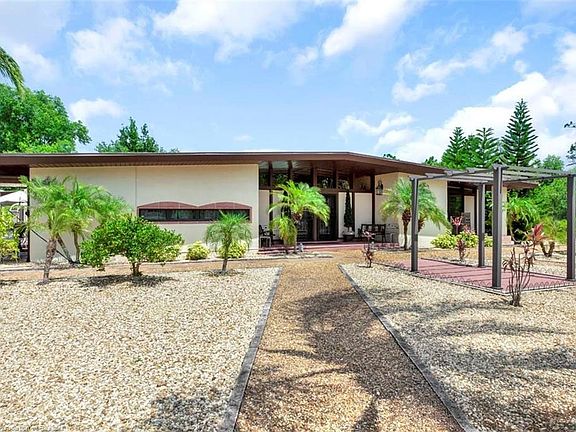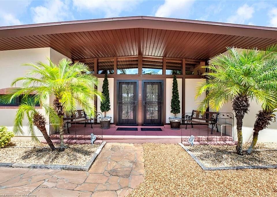 Mid-Century Modern Pool home right in the heart of Harder Hall. Just over 1/2 acre of hardscape landscaping for easy Florida living. You will enjoy all of the hard work these loving sellers put into this home. Home has a fantastic flowing floor plan, perfect for entertaining like they did back in the 70's. Centered around the screen enclosed pool area. Main home features 3 spacious bedrooms, formal living room, kitchen overlooking the family room and 2 bed 1 bath on other side of home all of this is connected with a dome pool cage to a cabana pool house or mother inlaw suite, let your imagination be your guide, this has a full bathroom too. The owners added a detached metal garage with 2 overhead doors 22w x 33d, perfect for your toys or projects. There is a 2 car carport portico to access the home. The front double doors have windows in them. Transom windows throughout this home allows natural lighting year round. The woodbeam ceilings are absolutely stunning. Really a one of kind property. Newer windows added recently. Rubberized roof recently coated. Come take a look and be swimming before summer. **PLEASE TAKE THE VIRTUAL TOUR LINK WITH 3D INTERACTIVE TOOLS