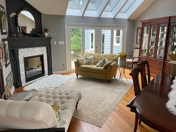 Not your average home! Open, flowing floor plan with plenty of space. Newly-renovated kitchen with large island and separate bar. Private first floor master suite, with renovated master bathroom featuring an exterior door leading to hot tub on deck. Attached "In-Law suite" with separate entrance, kitchenette, and bathroom. Large, renovated mudroom to accommodate a busy family. Light-filled foyer & living room that has a custom built gas fireplace with marble tile and painted maple surround. Large den off open kitchen with another custom gas fireplace with marble surround. Cul-de-sac lot, with large backyard area that includes a sports court and hot tub. Grand front entrance with large, covered porch featuring conversational seating.
