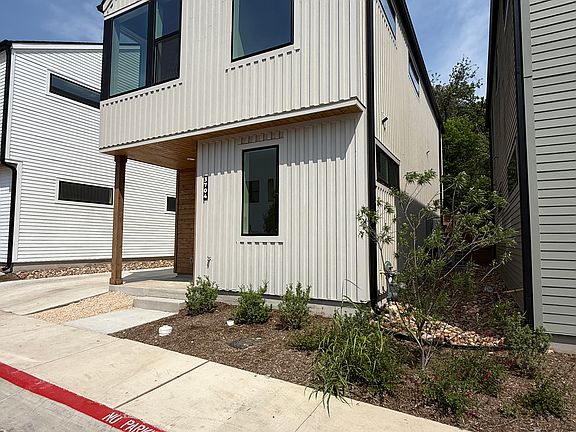 Discover modern luxury in this newly constructed home, nestled in the vibrant Mueller community of Austin, TX, just steps from the lively Mueller district! This eco-conscious residence boasts solar panels, spray foam insulation, and an EV charging station, blending sustainability with style. Step inside to an open-concept layout adorned with sleek wood floors and expansive windows that bathe the space in natural light. The gourmet kitchen is a chef's dream, featuring sophisticated gunmetal soft-close cabinetry, luminous quartz marble countertops, and a premium suite of Bosch appliances. Upstairs, the oversized primary suite is a serene retreat with soaring vaulted ceilings, accompanied by a well-appointed guest room and bathroom, both showcasing elegant vaulted designs. A versatile landing area offers the perfect nook for a home office or cozy reading space. Outside, the private backyard is an entertainer's paradise, ideal for gatherings or quiet evenings under the stars. Enjoy hassle-free living with HOA-maintained landscaping, leaving you more time to relax by the sparkling community pool or fire up the grill at the shared outdoor area. Negotiable
