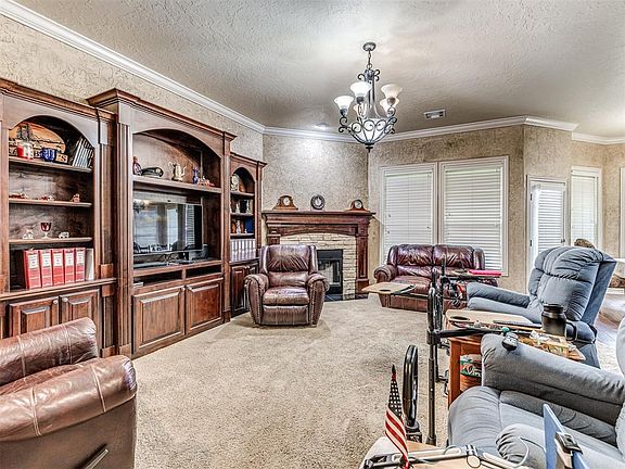 located in the Carrington Lakes neighborhood in NW Norman offers an open layout, custom woodwork, granite