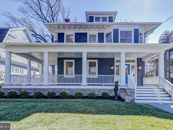 1913 Grand Chevy Chase DC Home, completely renovated in 2023. Located on one of the most coveted blocks The expansive wraparound porch welcomes you to a large foyer, living room with fireplace, dining room with coffered ceiling leading to screened porch with fireplace, Chef's kitchen with center island, tons of storage and table space breakfast nook. Main floor has 9+ ft ceilings , hardwood floors & leaded glass windows. The primary suite contains a bedroom built-ins, a large walk-in closet & washer/dryer unit. Primary bath with soaking tub, double vanity and shower. Two additional bedrooms and a full bath complete the second level. The top floor has a fourth bedroom, full bath and office or lounge space. The lower level has multiple recreation spaces, laundry/storage room and a half bath. All new Plumbing, electrical, mechanical systems. The newly constructed 2 story Accessory Building has a kitchen, full bath, living space and bedroom on the top floor; Exercise room and 1 car Garage on the lower level. Additional parking for 2 cars. Excellent location-Close to restaurants and shops.