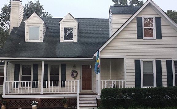 This home is perfect for a family or for young retirees! The large lot with crepe myrtles, inviting front porch, garden, and friendly neighborhood is an ideal place to raise children (just yards from Harris Creek Elementary and an easy drive to brand new Rolesville Middle and Rolesville High Schools) or enjoy a second childhood. The community is very friendly and safe (and the house has security lights in front, side, deck, and back corner). The living room's vaulted 18 foot ceiling and stone hearth will welcome you home. Climb the spiral staircase to a spacious double-room loft for reading and seclusion with four walls of built-in book cases. This house is designed to meet your needs! The kitchen is well equipped for your daily gastronomic needs with Kenmore refrigerator, G E Profilenrange/stove, Kenmore dishwasher, free standing butcher's block table, and breakfast nook. The kitchen is easily accessible as you bring in your groceries from the car with an awning covered beautiful new side entrance. Grill out or chill out on the back deck and then enjoy dinner in a charming dining room ideally situated and appointed with curio shelving and chair rail. Do woodwork, crafts, or simply keep up with your tools in the backyard work shed. The three bedrooms are more than ample for a family of four or five, and the upstairs loft is versatile enough to be used as one large T shaped room for den and library or any combination of bedroom, study,family room or bachelor/bachelorette pad. The master bathroom is freshly painted and has a two year old Aquaglass shower and the freshly painted hall bathroom is a tub/shower combination. Storage space is excellent with a walk-in master bedroom closet, double closets in the 3rd bedroom, two hall closets and large walk-in attic with shelving. The laundry closet is conveniently located next to the breakfast nook and kitchen. Both bathrooms and the two exterior electrical outlets are GFI safety outlets. Capture the perfect mood--dining room and living room lighting is dimmer controlled. These hardwood floors of living room and dining room have a lustrous shine. Stay cool--each bedroom, the kitchen, livingroom, and loft have ceiling fans. The house is 2 miles to I-540 (Buffaloe Road interchange), 5 minutes from Rolesville, 12 minutes to Wake Forest, 14 minutes to Knightdale, 10 minutes to Triangle Town Center, and three minutes from the Forestville Crossing Lowe's Food, CVS, Subway, Planet Fitness, Mexican and Chinese restaurants and pizza and Highway 401. The house is just 23 miinutes to RDU. Why live in a traffic jam when you can navigate all of Wake County with easy access and healthier blood pressure. Property taxes are county only and there are no home owner's association fees or covenants.